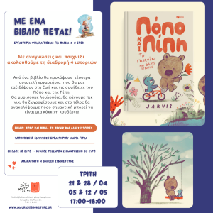 Το εργαστήριο φιλαναγνωσίας «Μ’ ένα βιβλίο πετάς!» ταξιδεύει τους μικρούς αναγνώστες μέσα από ένα βιβλίο.