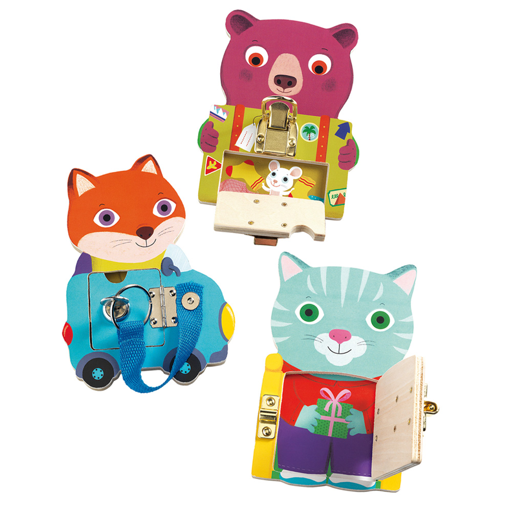 Τα ζωάκια με τα κλειδώματα της εταιρίας Djeco βοηθούν το παιδί στην ανάπτυξη της λεπτής κινητικότητας, καθώς και στην ευλυγισία και την ενδυνάμωση του καρπού και των δακτύλων. Τα παιδιά μαθαίνοντας τα κλειδώματα που συναντούν στην καθημερινότητα τους αποκτούν αυτονομία σε βασικές ανάγκες. Η συσκευασία περιλαμβάνει 3 φιγούρες με διαφορετικά κλειδώματα. Κατάλληλό από 3 ετών και άνω. Διαστάσεις φιγούρας: 16×11 εκ.