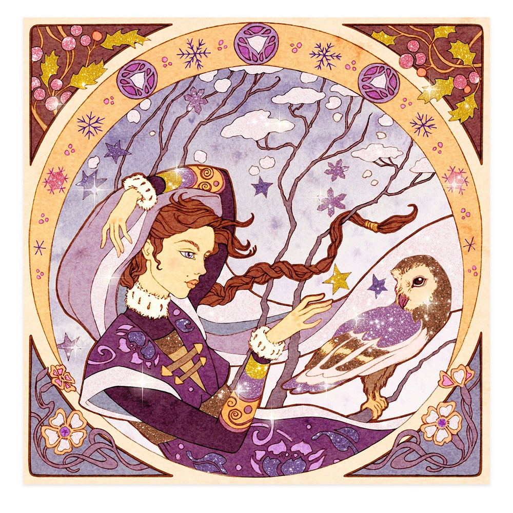 Εικαστική τεχνική με γκλίτερ σε εικονογραφήσεις εμπνευσμένες από το στυλ του μεγάλου δεξιοτέχνη της Art Nouveau, Alfons Mucha, από την εταιρεία Djeco. Τα παιδιά τοποθετούν την εικόνα στο κουτί, αφαιρούν το κατάλληλο αυτοκόλλητο με το ειδικό εργαλείο και τοποθετούν πάνω το αντίστοιχο χρώμα γκλίτερ ακολουθώντας τις χρωματικά κωδικοποιημένες οδηγίες. Νεαρές γυναίκες ζωντανεύουν μέσα σε καταπράσινα περιβάλλοντα. Συμπεριλαμβάνεται φυλλάδιο με εικονογραφημένες οδηγίες και πληροφορίες για τον καλλιτέχνη και το καλλιτεχνικό κίνημα στο οποίο ανήκει. Κατάλληλο από 7 ετών. Διαστάσεις συσκευασίας: 31 x 23 x 2 εκ.