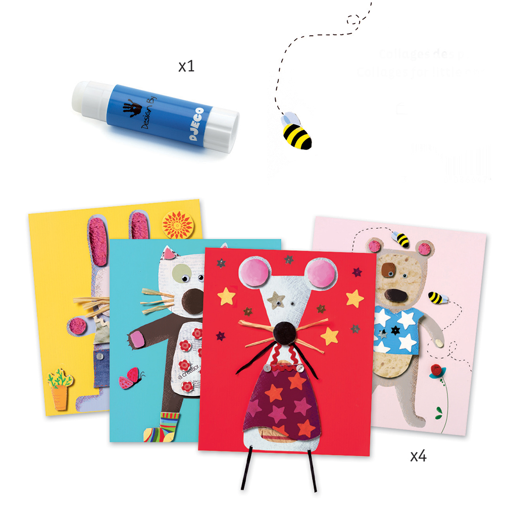 Τέσσερα ζωάκια σας περιμένουν να τους δώσετε μορφή. Κατασκευές-κολλάζ από την εταιρία Djeco με βιβλιαράκι οδηγιών. Πρωτότυποι συνδυασμοί που εξάπτουν την φαντασία των παιδιών και αναπτύσσουν τη δημιουργικότητα τους. Διαστάσεις: 33x23x40 εκατοστά