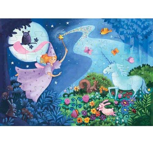 Η νεράιδα της εταιρίας Djeco με μια κίνηση του ραβδιού της μετατρέπει τη νύχτα σε μέρα! Ο μονόκερος της παίζει ανέμελα ανάμεσα στα λουλούδια τις πεταλούδες και τα λαγουδάκια! Ένα παραμυθένιο πάζλ 36 τεμαχίων, για παιδιά ηλικίας 4 ετών και άνω.