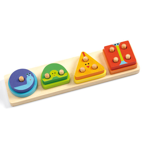 Djeco Ξύλινη βάση με καβίλιες Μαθαίνω γεωμετρικά σχήματα – χρώματα