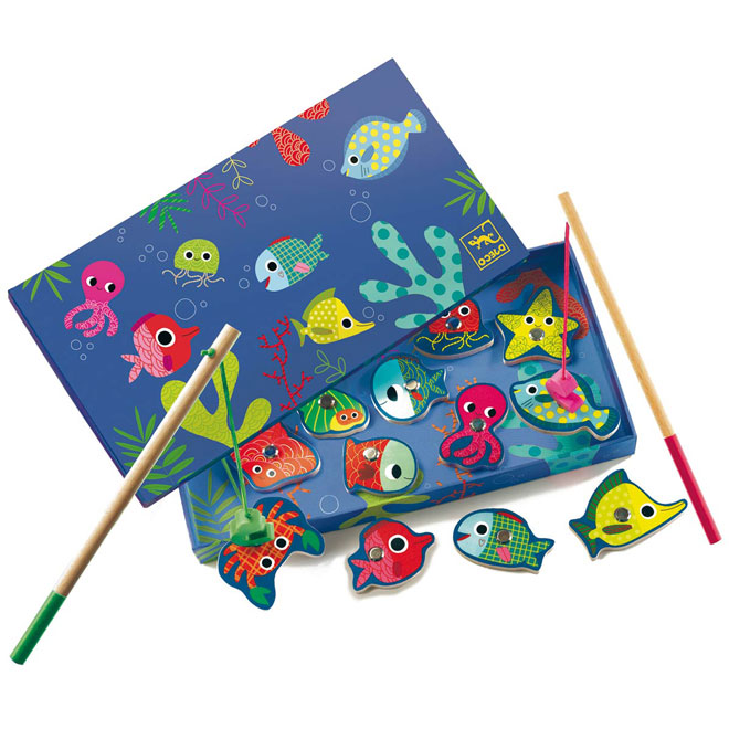 Ώρα για ψάρεμα. Ένα μοναδικό μαγνητικό παιχνίδι πού θα εξασκήσει την παρατηρητικότητα και τον οπτικοκινητικό συντονισμό των μικρών παιδιών. Το σετ περιλαμβάνει 12 ξύλινα μαγνητικά ψαράκια και 2 ξύλινα μαγνητικά καλάμια ψαρέματος.